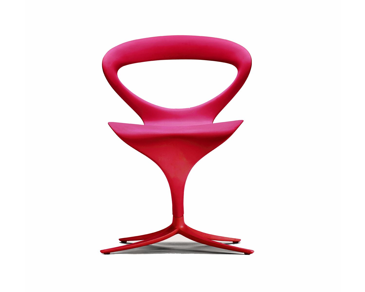 Sitz aus lackiertem steifen Polyurethan. Feststehender Sockel aus Druckguß-Aluminium